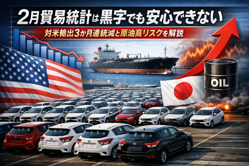2月貿易統計は573億円の黒字——対米輸出は3か月連続減、自動車と部品に関税の重荷、原油高が迫る次のリスク