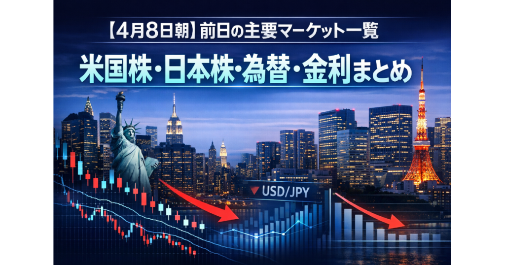 【4月8日朝】前日の主要マーケット一覧|米国株・日本株・為替・金利まとめ