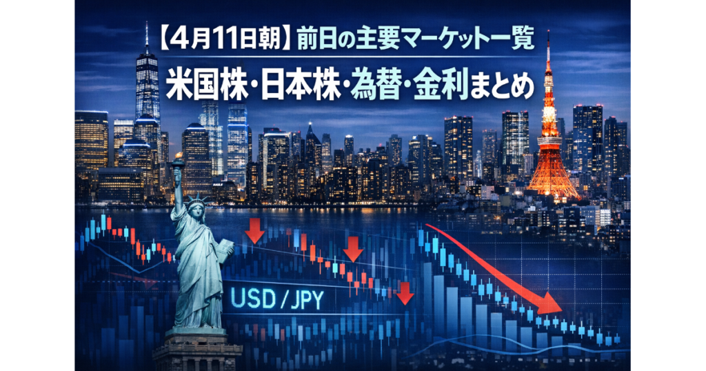 【4月11日朝】前日の主要マーケット一覧|米国株・日本株・為替・金利まとめ