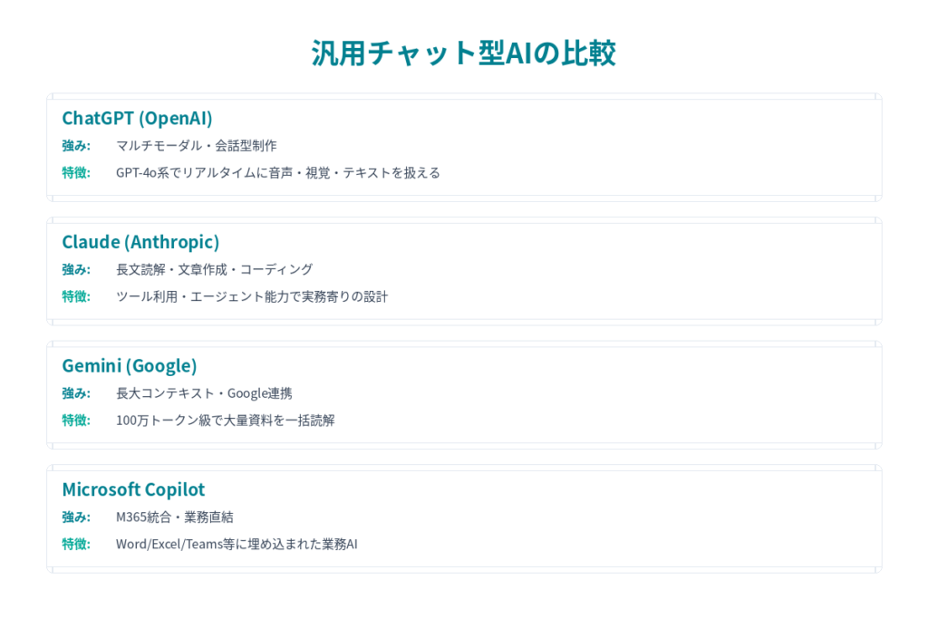 1. 汎用チャット型:個人〜業務の”万能”枠