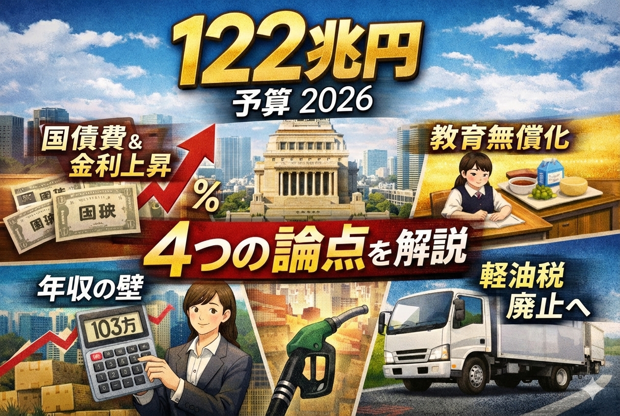 今回の122兆円予算は、単純な拡張か緊縮かで割り切れない。金利上昇に伴う国債費、高齢化に伴う社会保障費という構造要因の重さを抱えながら、教育無償化、年収の壁見直し、燃料税の暫定税率廃止など、家計や労働市場・物流コストに影響しうる施策が並ぶ。
