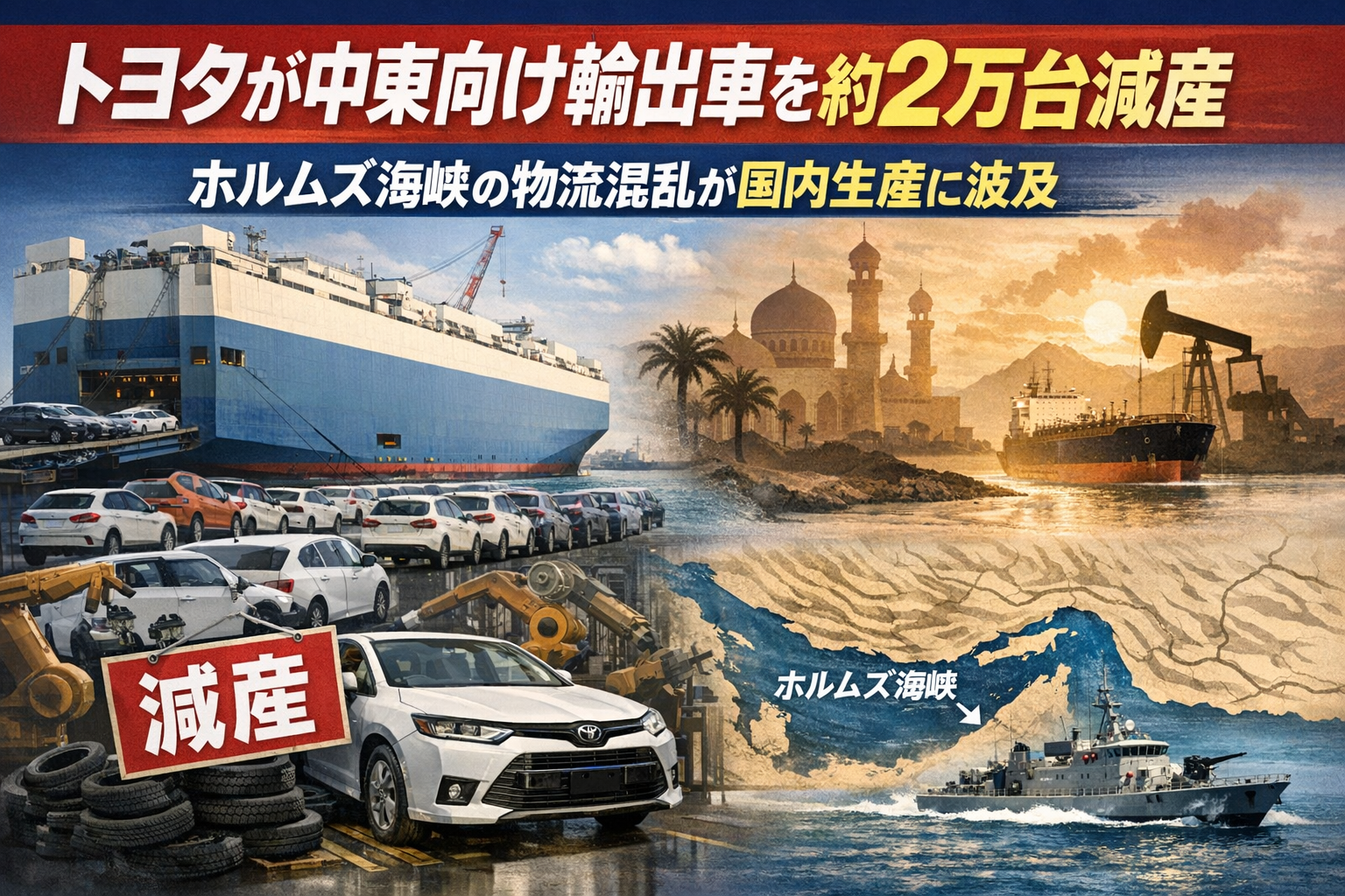 3月末でこの減産が収まるのか、それとも4月以降も続くのか——それを決めるのは、工場でも市場でもなく、ホルムズ海峡の情勢だ。