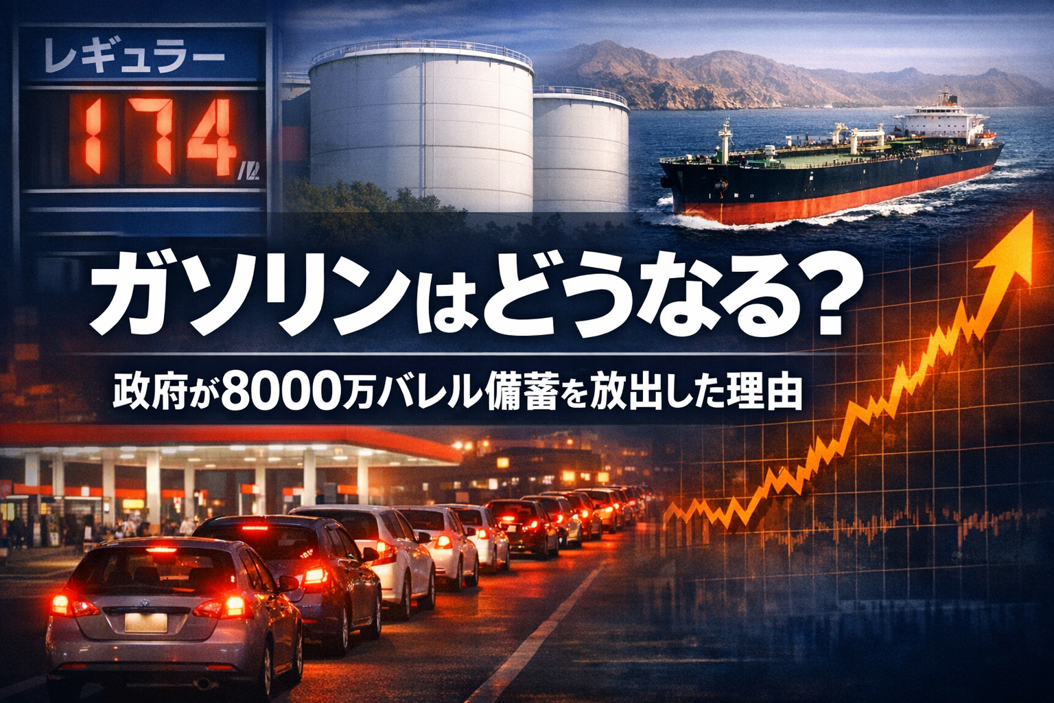 2026年3月11日夜、高市総理大臣がテレビカメラの前で異例の発表を行った。石油備蓄を放出し、ガソリン価格を1リットル170円程度に抑える緊急措置を講じる──。声明が流れた直後から、全国のガソリンスタンドに車が殺到した。名古屋でも福岡でも、給油待ちの列が道路へあふれ出した。