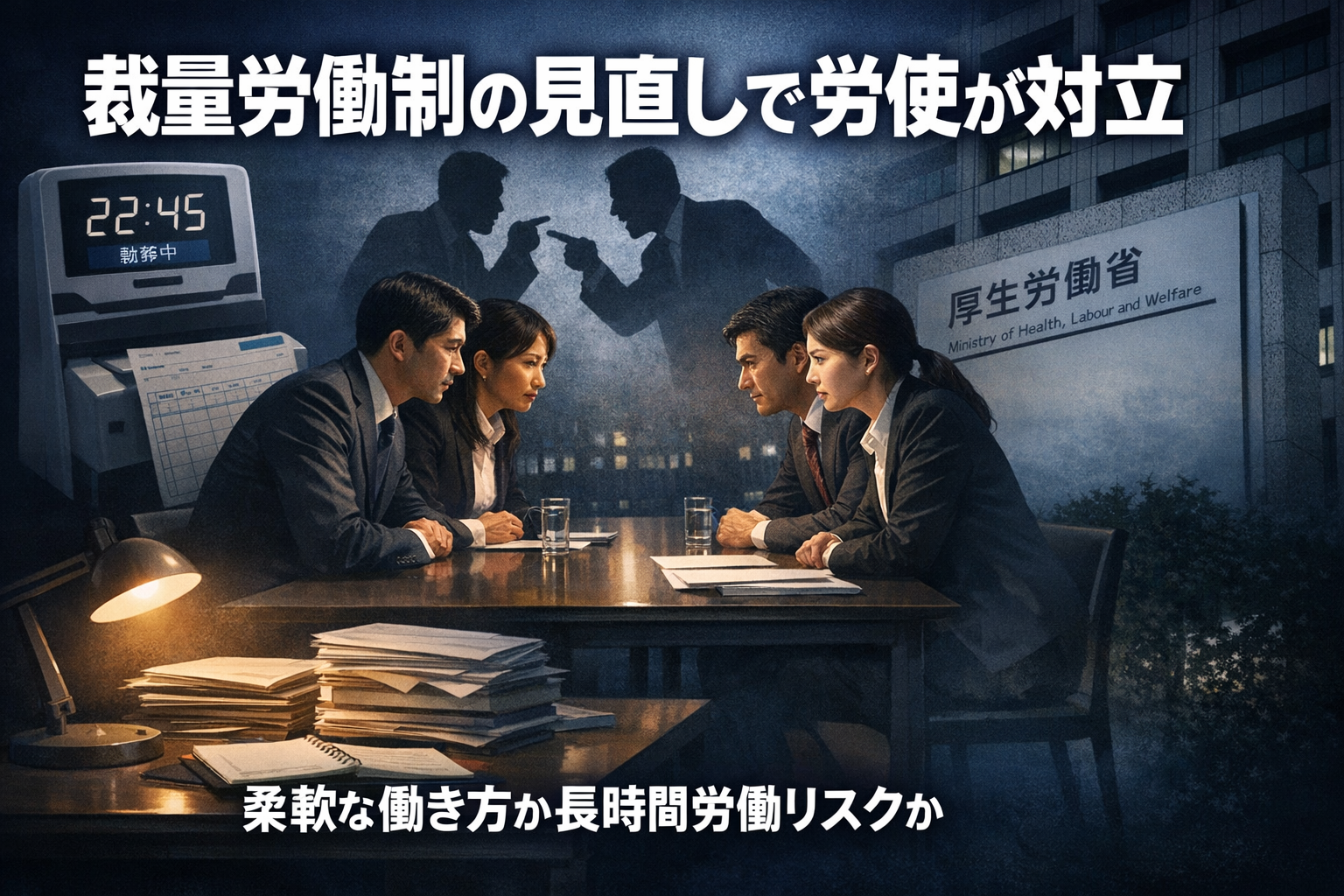 反対の核心は、名前の上では「裁量がある」制度でも、現実には裁量がないまま適用されているケースがあるという問題だ。「自分で業務量と時間の配分を決められない状態で裁量労働制が適用されれば、残業代が出ないまま長時間働かされるリスクがある」という懸念で、労働者側にとってはリスクの大きい制度なのだ。