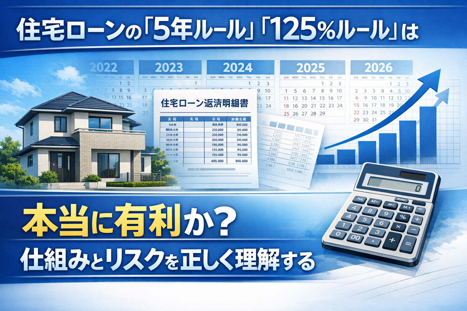 つまり、5年ルール・125%ルールは「金利上昇のリスクを消す仕組み」ではなく、「返済額の急変を後ろに先送りする仕組み」と理解した方が正確だ。