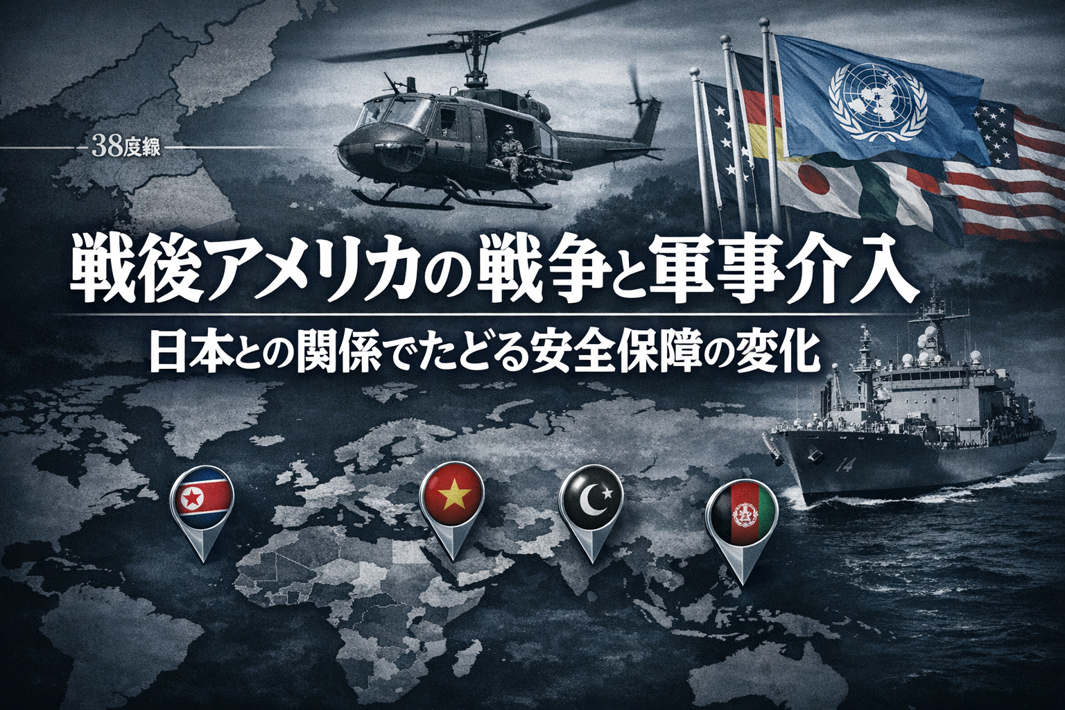 足元のイラン情勢を受け、アメリカの軍事行動と日本の安全保障の関係をあらためて問い直す機会が増えている。第二次世界大戦以降、アメリカは朝鮮戦争、ベトナム戦争、湾岸戦争、アフガニスタン戦争など、多くの戦争・軍事介入に関与してきた。ここでは正式な宣戦布告の有無を問わず、米軍が本格的に投入された主要な戦争・大規模軍事介入をたどる。それぞれの戦争はなぜ起きたのか。そして日本は、そのたびに何をし、何を変えてきたのか。