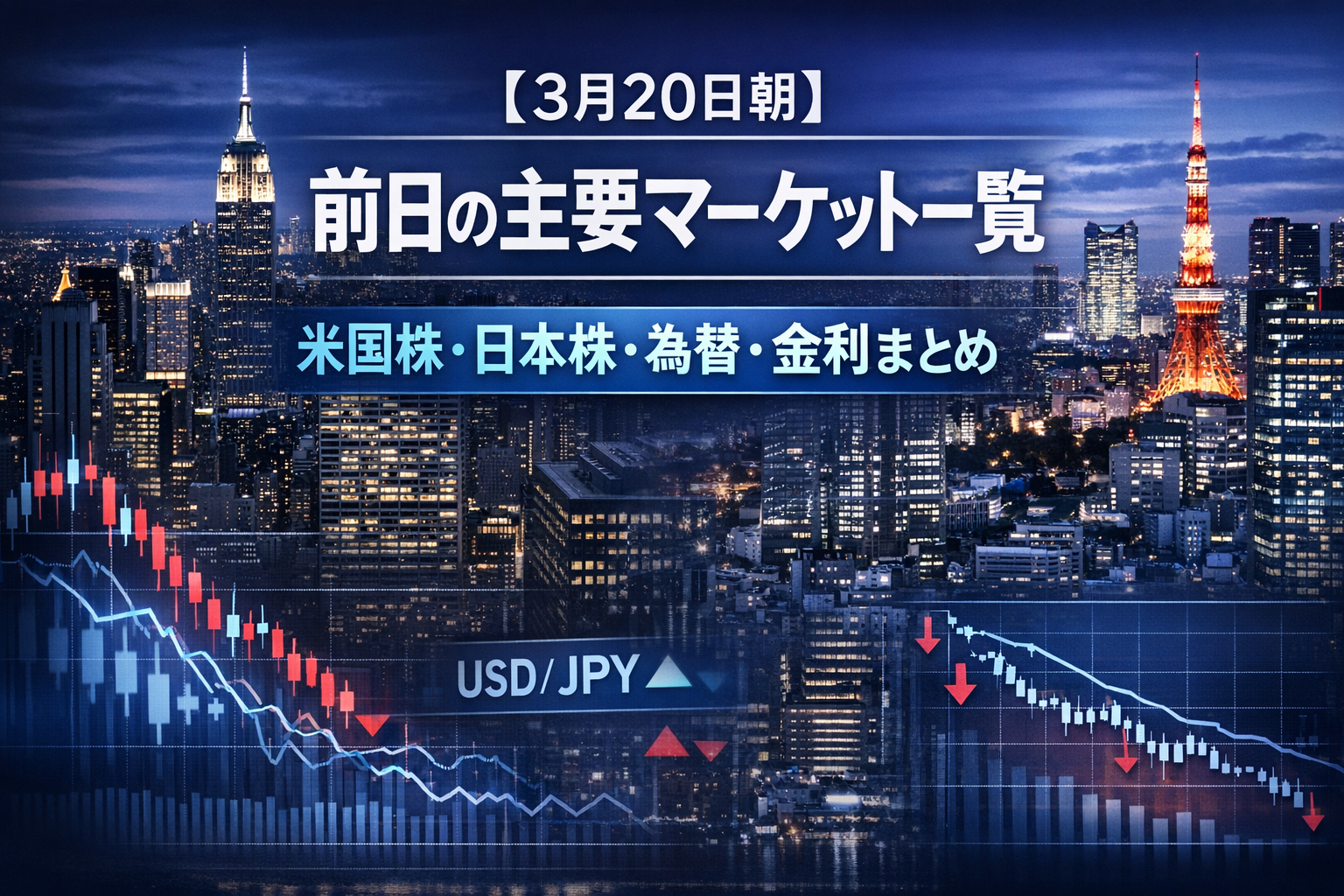 【3月20日朝】前日の主要マーケット一覧|米国株・日本株・為替・金利まとめ