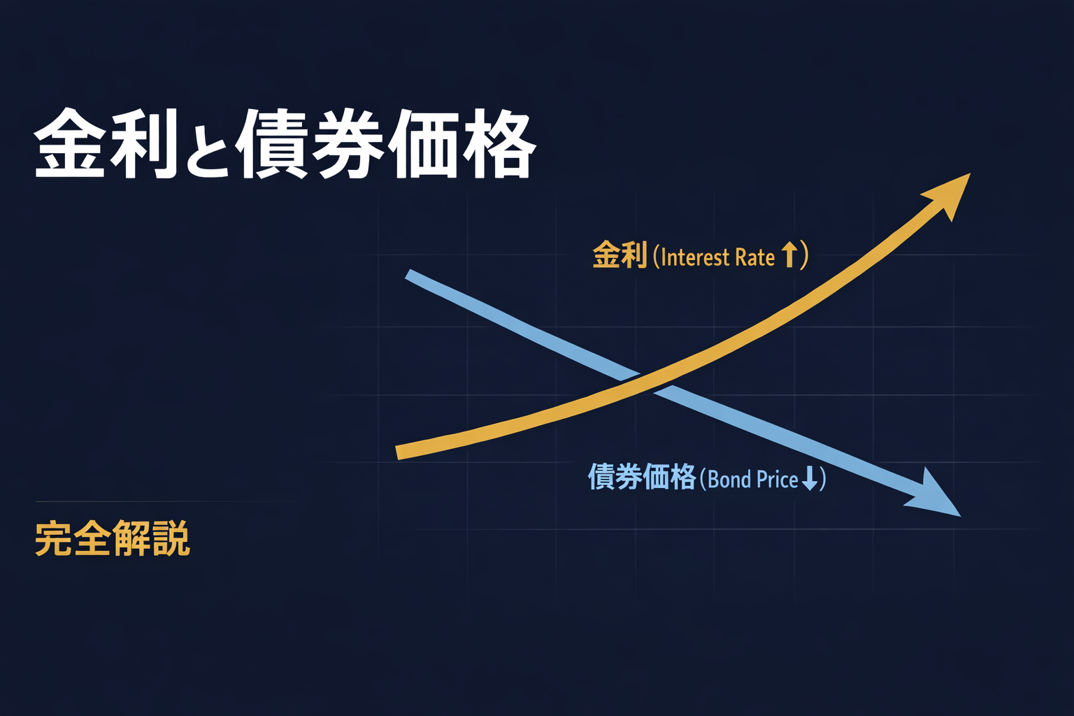 金利と債券価格は常に逆方向に動く。市場金利が上がると既発債の価格は下がり、長期債ほど値動きが大きい(デュレーション)。