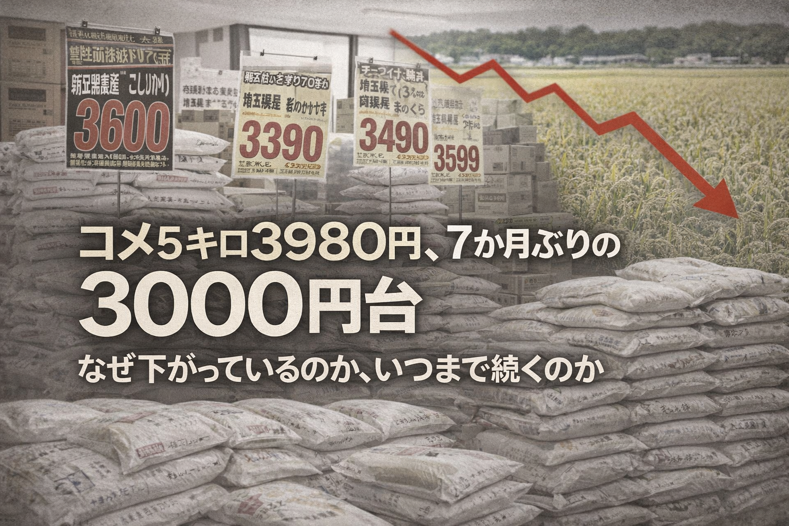 しかし今回の値下がりを「コメが安くなった」と読むのは、少し違う。本当のニュースは、値段がいくらになったかより、なぜ下がっているのかにある。