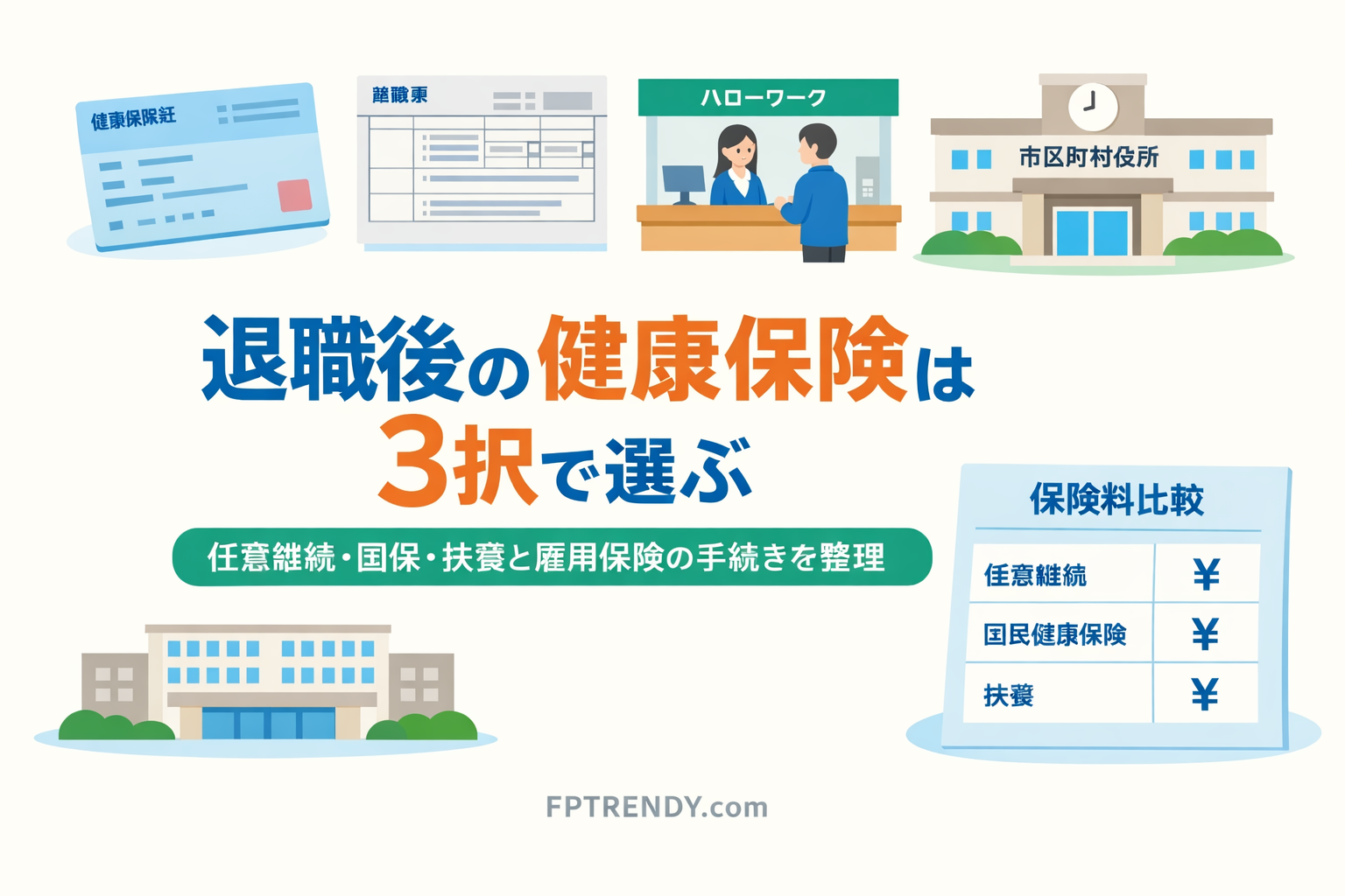 「退職したら自動的に国民健康保険」という理解は正確ではない。3つのどれかを自分で選んで手続きをする必要があり、どれが最善かは個々の状況によって異なる。それぞれの特徴を把握した上で比較することが第一歩になる。