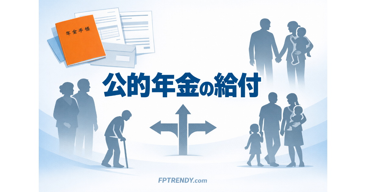 この記事では、公的年金の給付全体を大きく整理しながら、老齢給付、障害給付、遺族給付の違いと見方を確認する。細かな受給要件や計算方法は制度ごとに異なるため、まずは全体像をつかむための見取り図として読んでほしい。