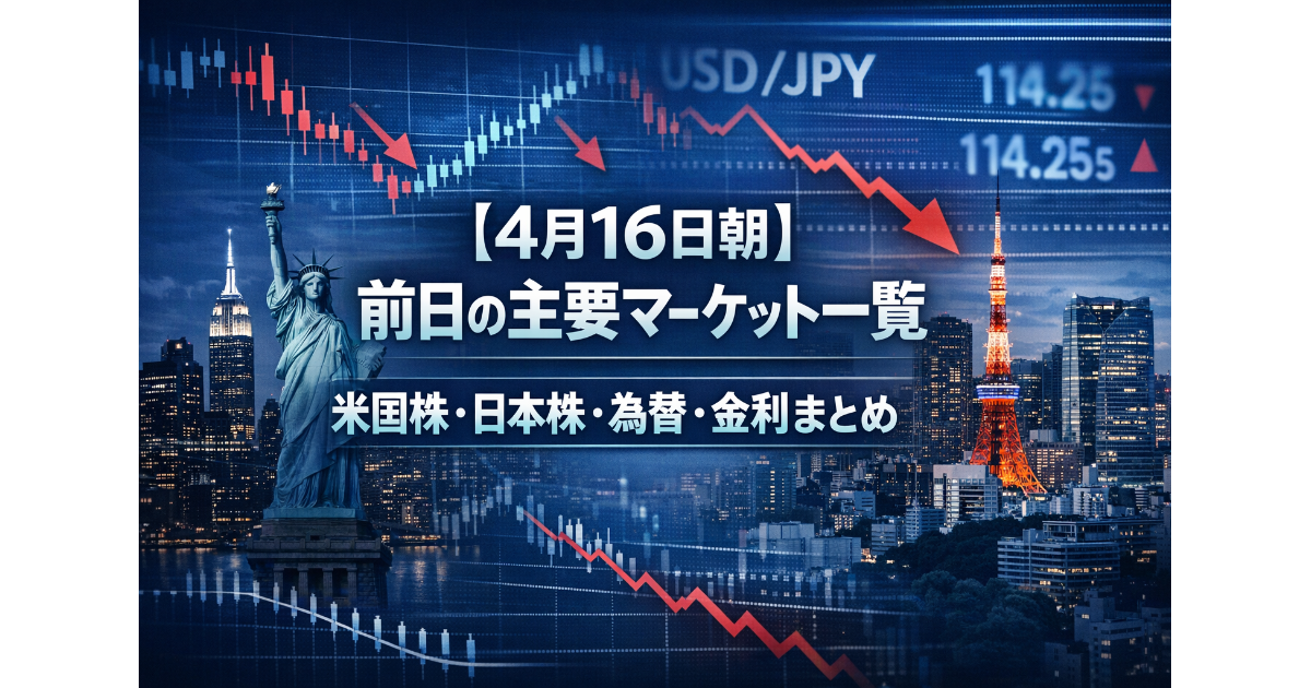 【4月16日朝】前日の主要マーケット一覧|米国株・日本株・為替・金利まとめ