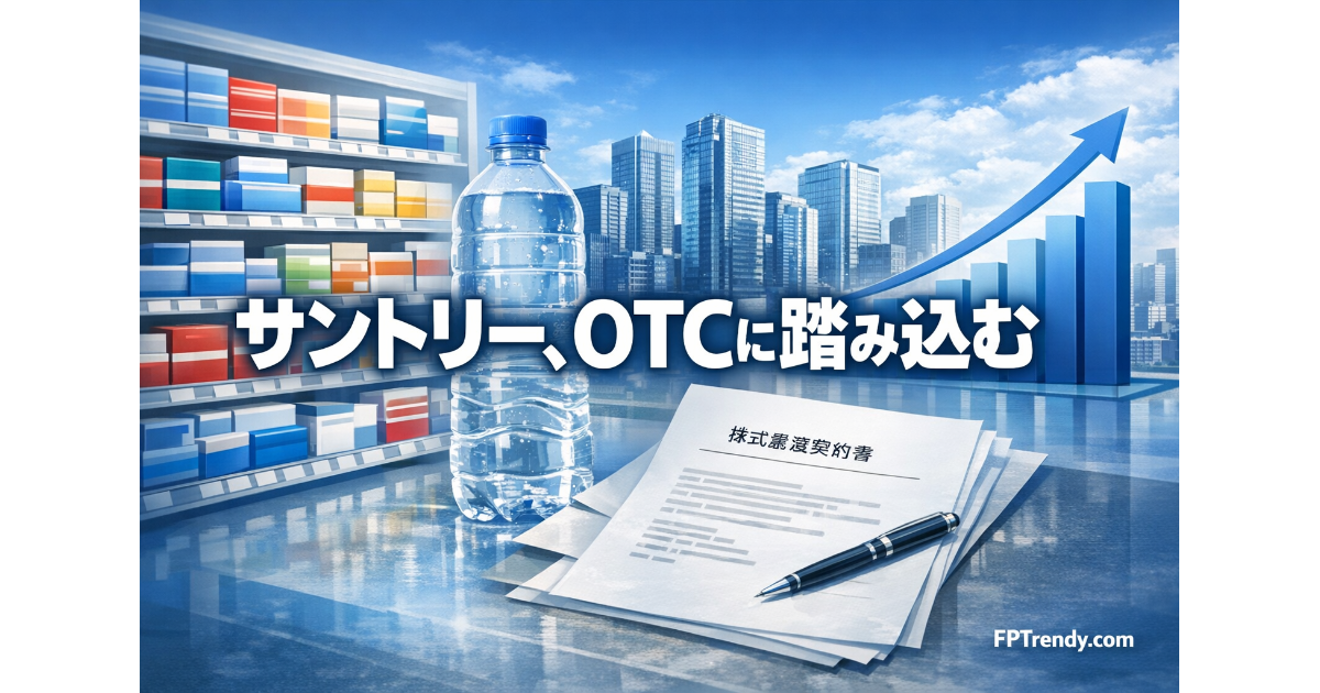 サントリーは2027年6月1日予定の第2段階完了後に第一三共ヘルスケアを連結子会社化し、2029年6月1日予定の第3段階完了後に完全子会社化する。食品や飲料、健康食品に強みを持つ企業が、ブランド力のあるOTC医薬品やスキンケアまで取り込むことで、事業ポートフォリオの輪郭は大きく変わる。