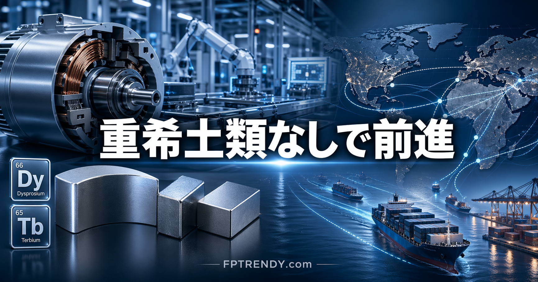 EVやスマートフォン、産業機械に使う高性能磁石の分野で、日本企業の対応が具体化してきた。焦点にあるのは、ジスプロシウム(Dy)やテルビウム(Tb)といった「重希土類」を使わない磁石だ。中国依存の大きい素材を減らすのではなく、そもそも使わない設計を広げる動きが表面化している。