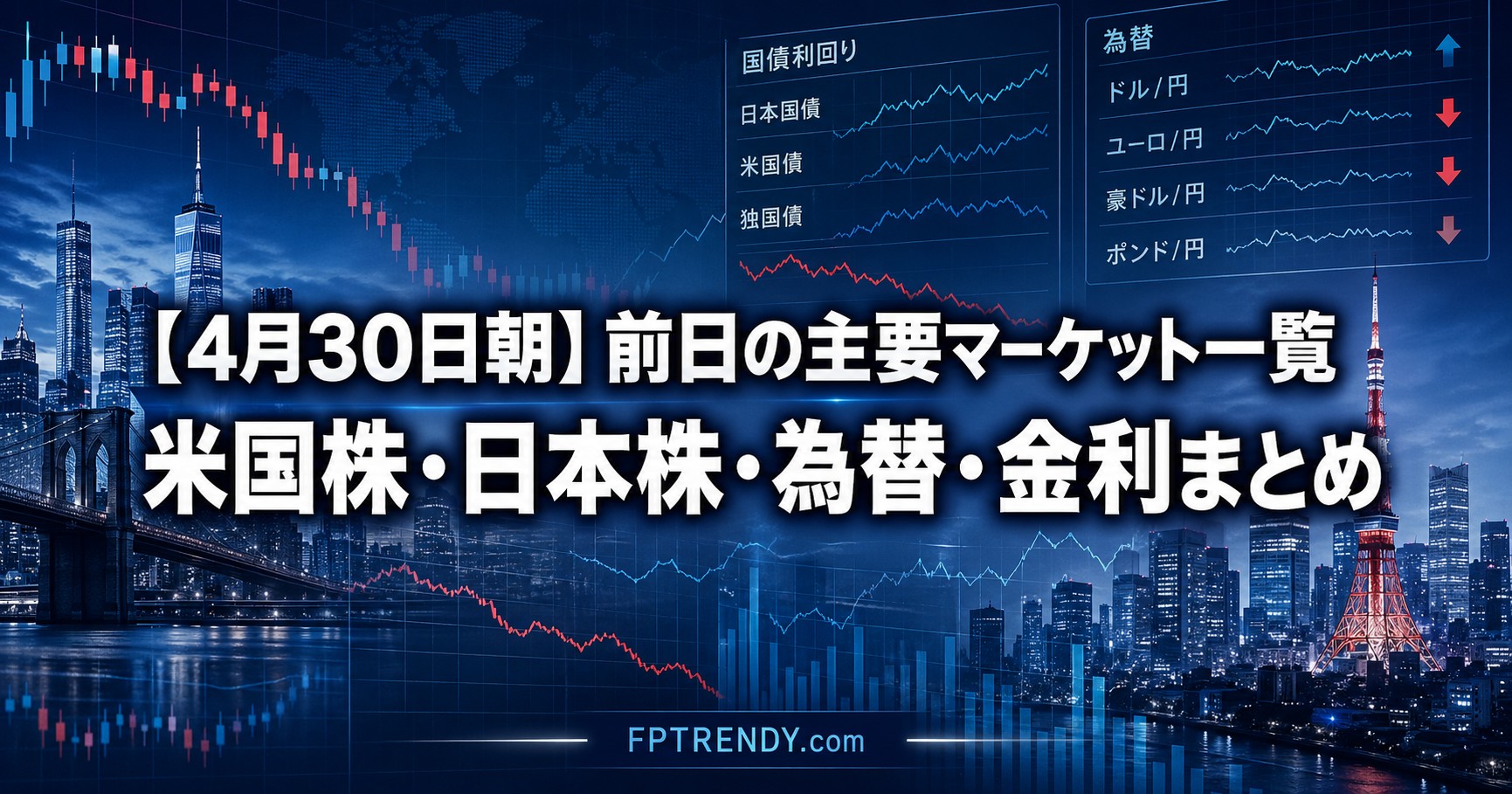 【4月30日朝】前日の主要マーケット一覧|米国株・日本株・為替・金利まとめ