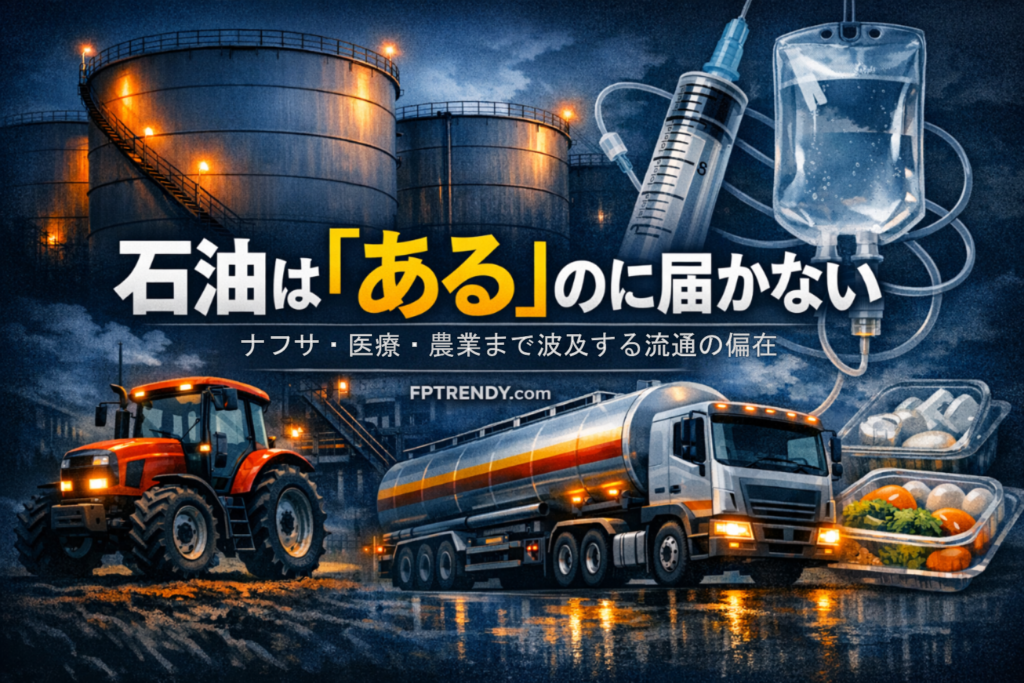 中東情勢を受けた政府の石油対策。「量は足りている」のに現場で混乱が起きるのはなぜか——ナフサ・医療物資・農業燃料まで波及する流通の偏在問題と、備蓄放出から配分管理へと広がる政府対応を解説します。 -