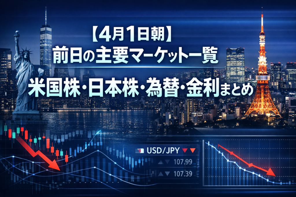 【4月1日朝】前日の主要マーケット一覧|米国株・日本株・為替・金利まとめ