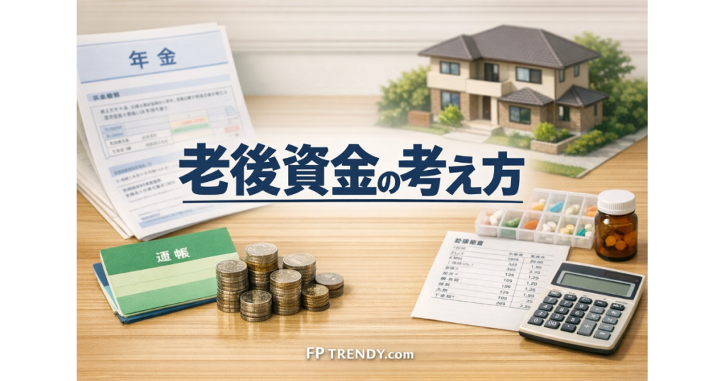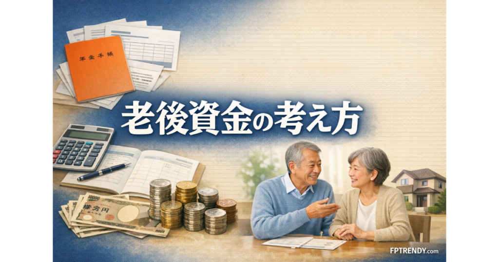 老後生活資金の考え方を、年金、退職金、貯蓄の役割からやさしく整理する。不足額だけに振り回されず、収入と支出のバランスで考える視点を解説する。 -